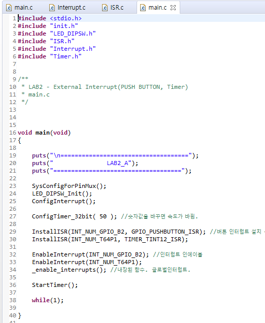 이제 모든 기능을 인터럽트화 시켰다. 메인문을 보면 훨씬 깔끔해 진 것을 볼 수 있다.