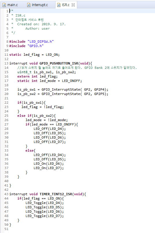 저기에서 GPIO_PUSHBUTTON_ISR 은 새롭게 정의한 함수이다.
