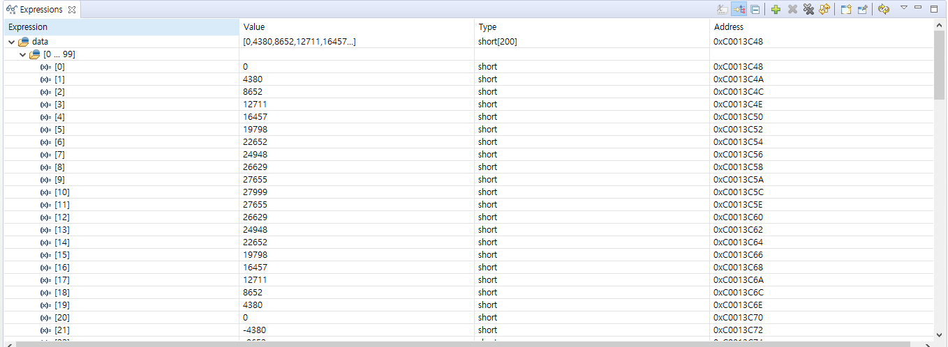 View -> Expressions 에 들어가면 계산된 sine을 볼 수 있다.