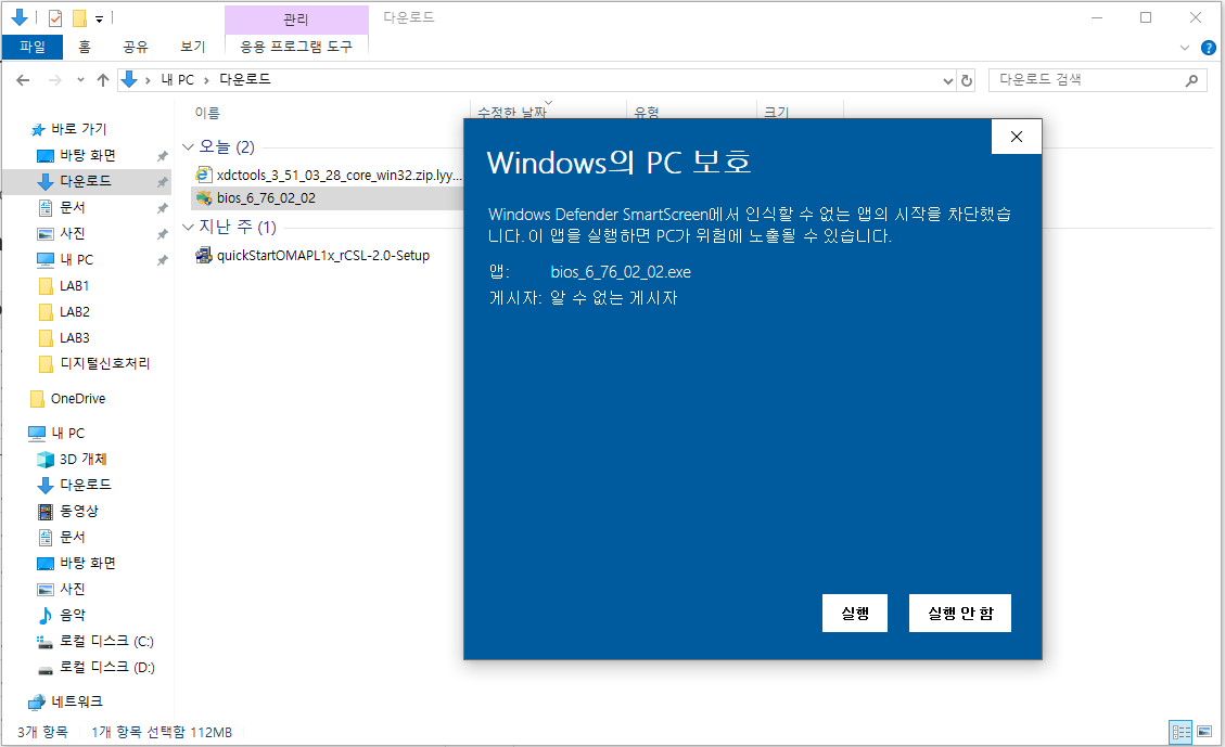 이런 창이 뜨면 실행을 눌러 프로그램을 설치하자.