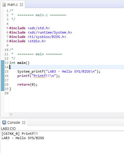 메인문과 출력문의 차이를 보자. 분명 System_printf()가 먼저 쓰였는데 콘솔창의 출력은 Printf!!가 먼저 출력되었다. Printf 는 바로 출력을 하는 반면 System_printf()는 메모리에 출력 후 프로그램 종료 후 읽어오는 방식을 사용하기 때문에 나타나는 현상이다.
