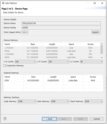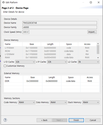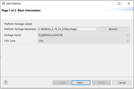 Edit Platform은 기존에 C6748.cmd 파일에서 설정했던 사항들을 GUI적으로 설정 가능하게 도와준다. 한번 설정을 바꾸어보자.