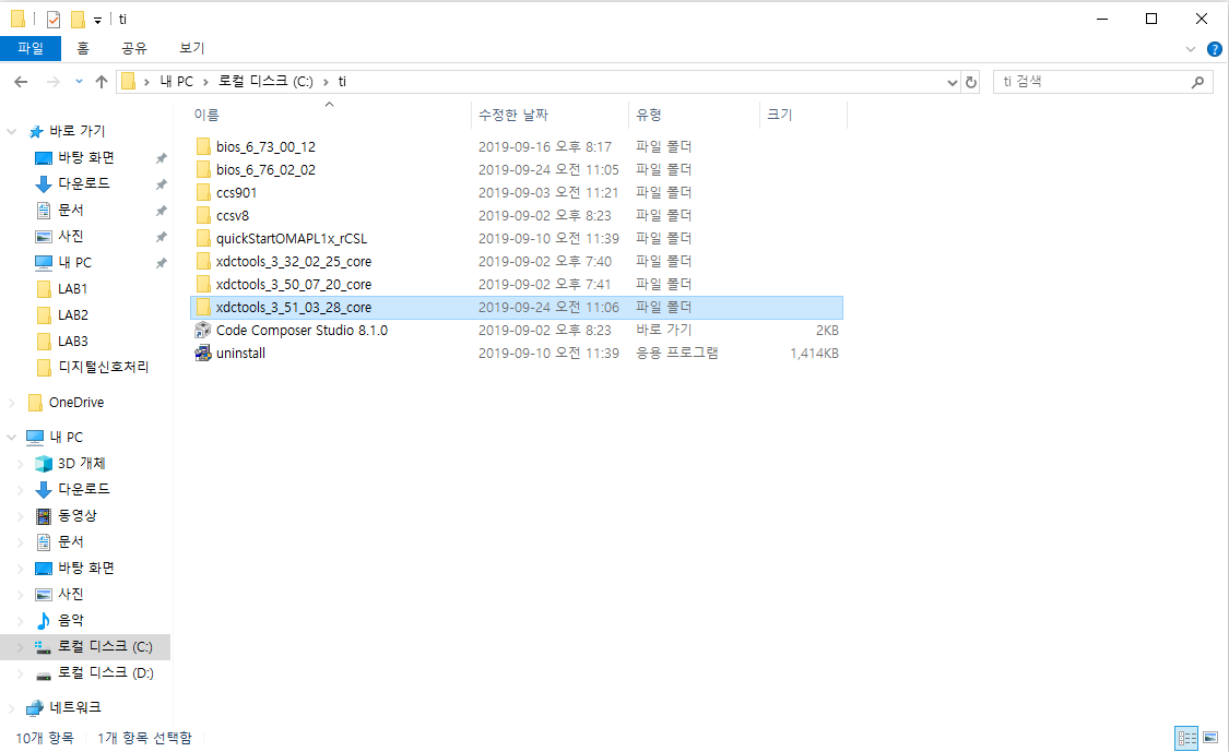 BIOS 6_76_02_02에 매칭되는 XDCtools 3_51_03_28 버전을 다운받아 압축을 풀고 C:\ti 디렉토리에 사진과 같이 넣어준다.
