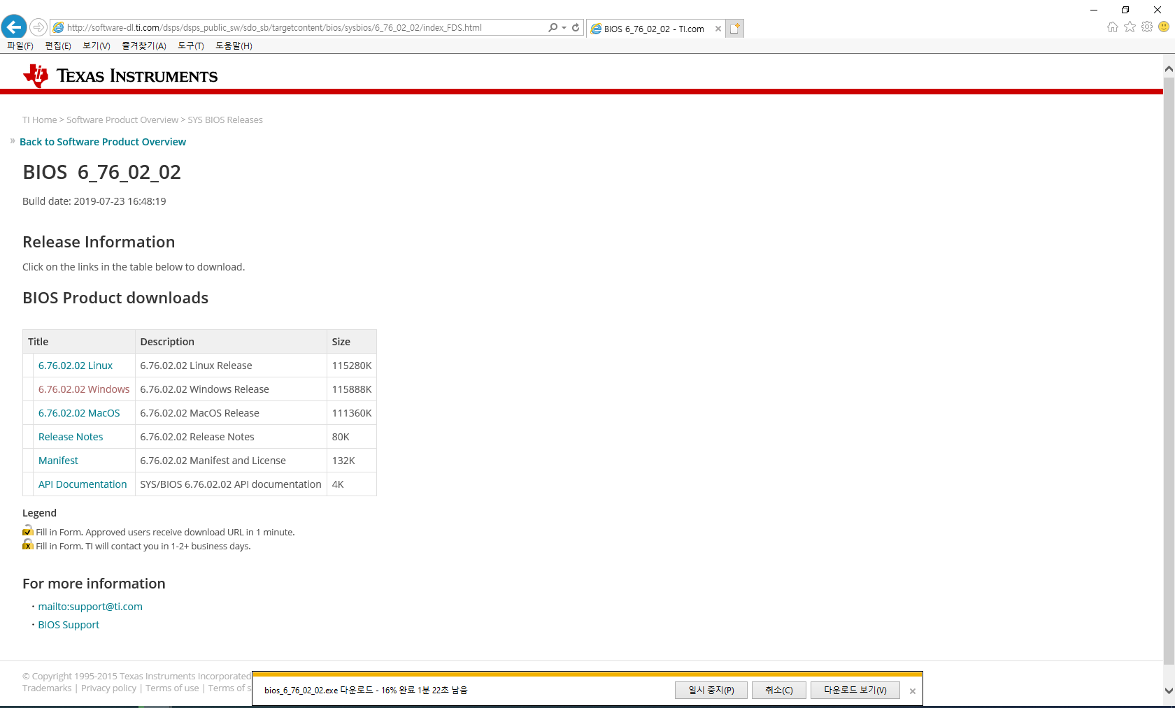 설치가 잘 되었다면 다음과 같은 화면이 뜰 것이다. Install 후 뜨는 창에 따라 재 시작을 해주면 SYS/BIOS의 설치가 끝난다.