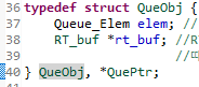 먼저 큐를 선언해 줘야 할 것이다. 큐에는 항상 Queue_Elem이라는 것이 있어야 한다. 이에 대해 자세한 것은 스스로 찾아보자. 중요한 것은 rt_buf를 포인터로 썼다는 것이다. RT_buf rt_buf; 그냥 이렇게 선언하면 될 것 같다고 생각할 수도 있으나 이 버퍼 하나는 무려 1600바이트이다. 하나를 꺼내면 1600바이트가 이동한다는 것은 매우 비효율적이다. 따라서 static으로 버퍼를 만들어 둔 뒤, 포인터를 만들어 큐에 넣어준 것이다.