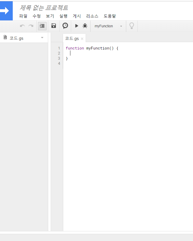 이제 스프레드시트에 대한 스크립트를 편집할 수 있는 창이 떴다.