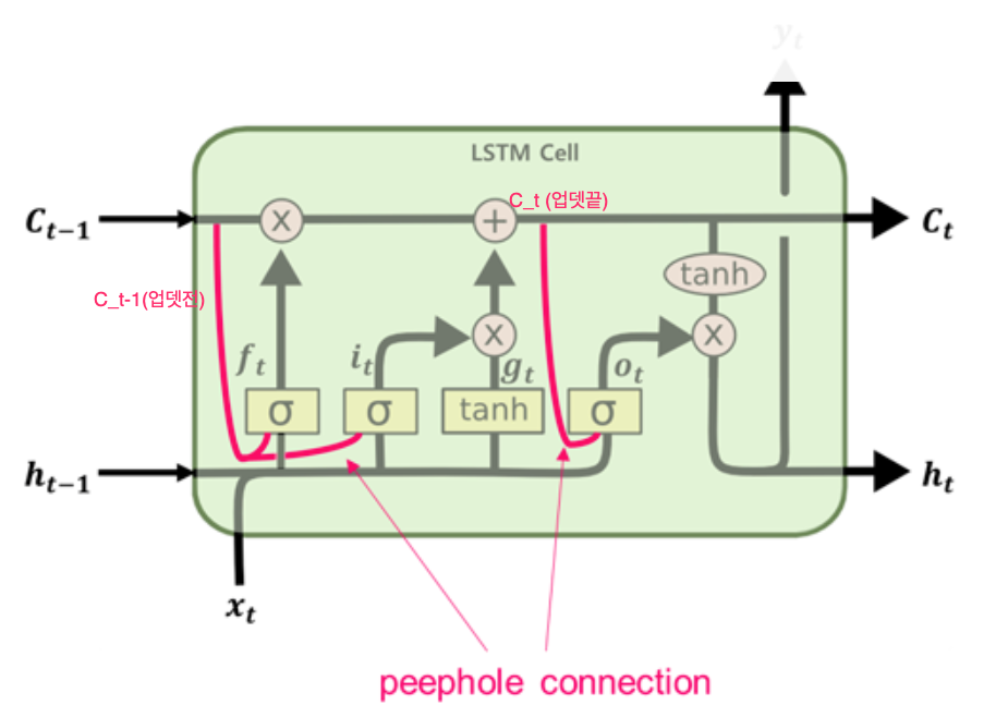 이는 일종의 이전 상태를 hidden state 에 입력으로 꽂아 넣어주는 형태이다. 이를 통해서 시퀀스 정보가 부족해지지 않도록 보완해줬다고 생각하면 된다. 수식은 복잡하나 기존 LSTM 글을 읽었고, 저 그림을 본다면 금방 이해할 수 있을 것이라 생각한다.