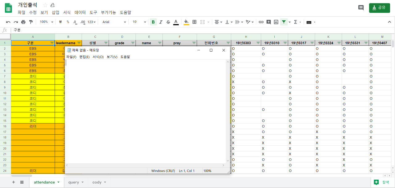 (해당 프로젝트는 교회 출석을 기입하기 위해 만든 프로젝트이다.)